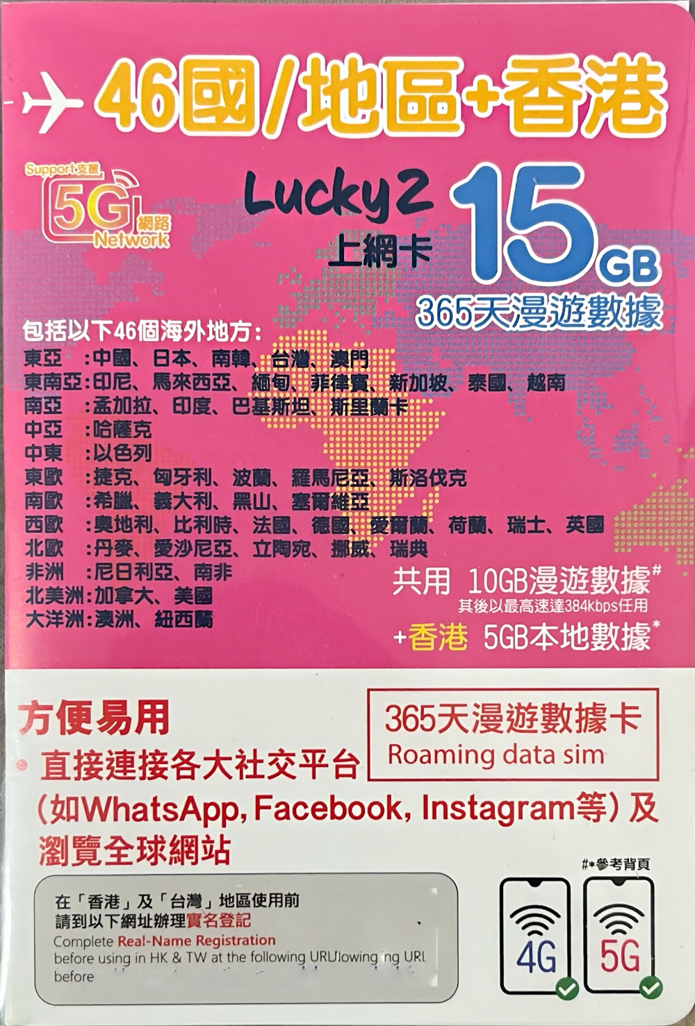 本香港上网卡提供共15GB 数据用量,其中包括: